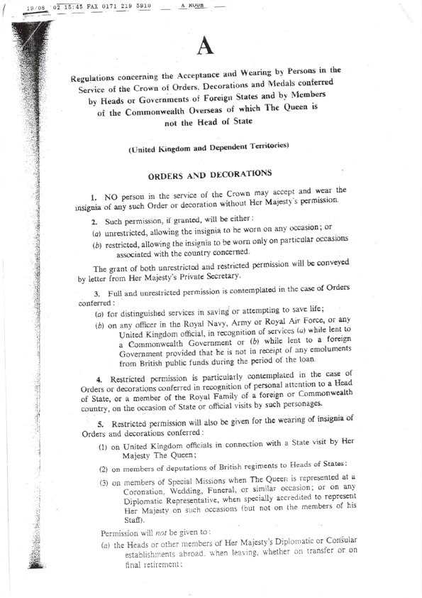 1969 Foreign Decorations Regulations, Part A page 1 Part A page 2, Part A page 3,